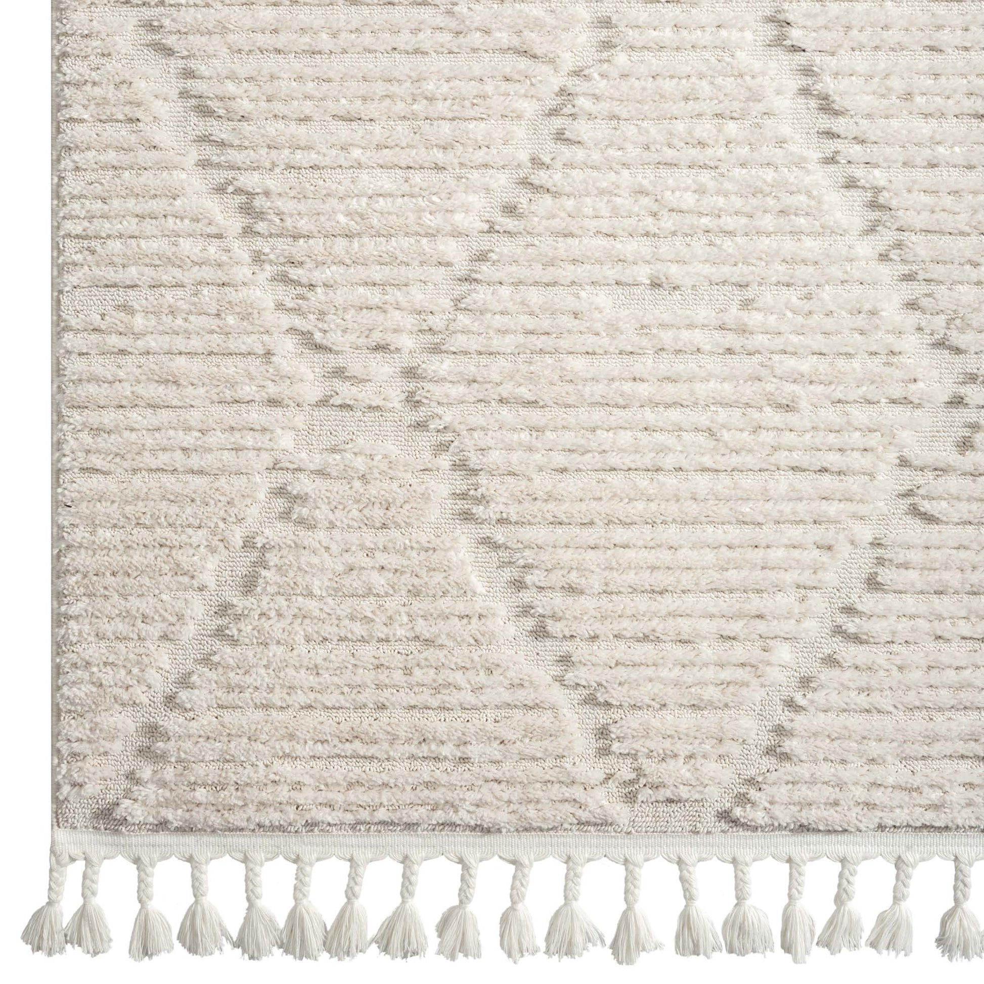 This attractive collection, with its subtle designs and geometric patterns is made from soft polyester, and has a high-and-low sculpted pile with up to 20 mm. thickness. The harmonious colour scheme used in this fashionable collection is complemented with versatile motifs and finished with braided fringes. This highly decorative collection is power loomed in Turkey and has shed-resistant, anti-static properties.